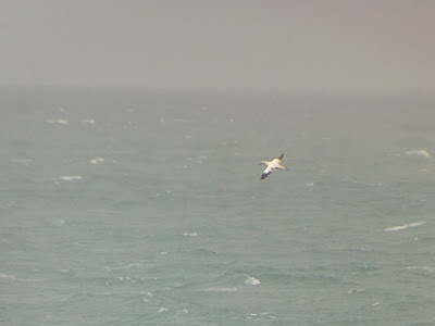Con el móvil pude tomar algunas instantáneas del paso de alcatraces atlánticos desde la parte superior del acantilado de la playa de la Calita.