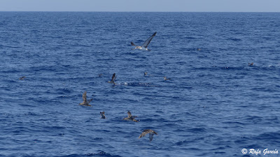 Por último agradecer a los fotógrafos embarcados en esta "expedición" pelágica la aportación de fotografías para documentar esta entrada y a Dani López Velasco por sus aportaciones en la separación de las pardelas cenicientas.