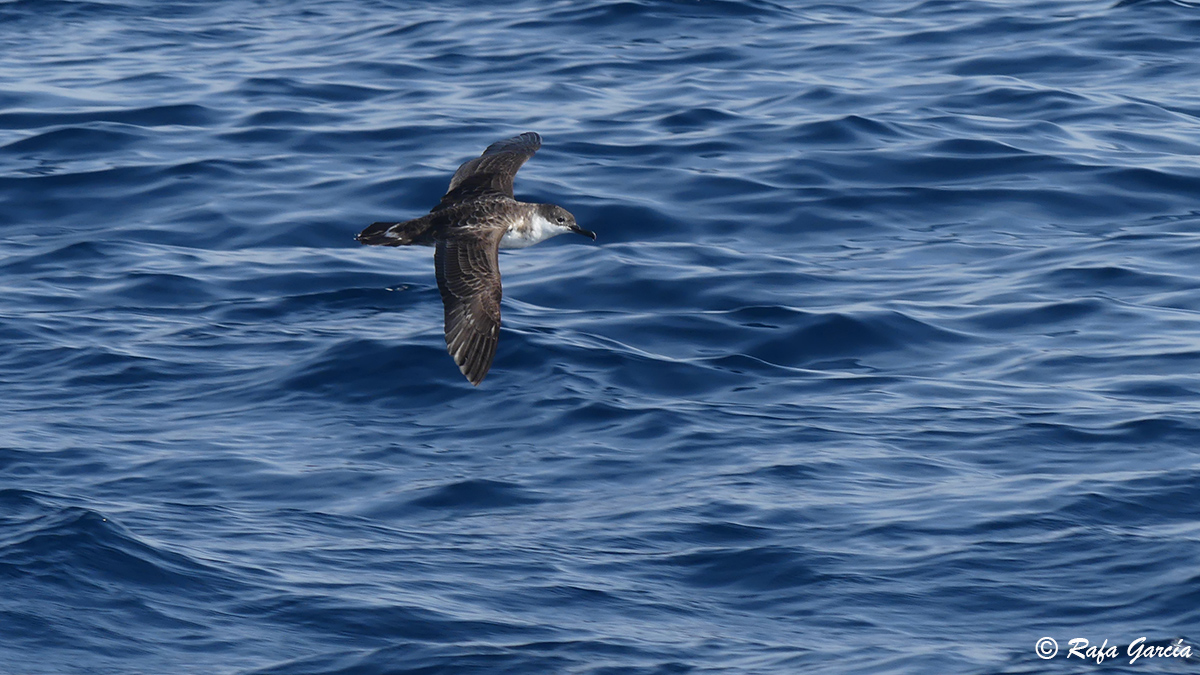 Momento especial fue la llegada de una pardela capirotada, a la postre la única observada en esta salida pero que se hizo la protagonista, por un buen rato, de nuestras miradas y objetivos.